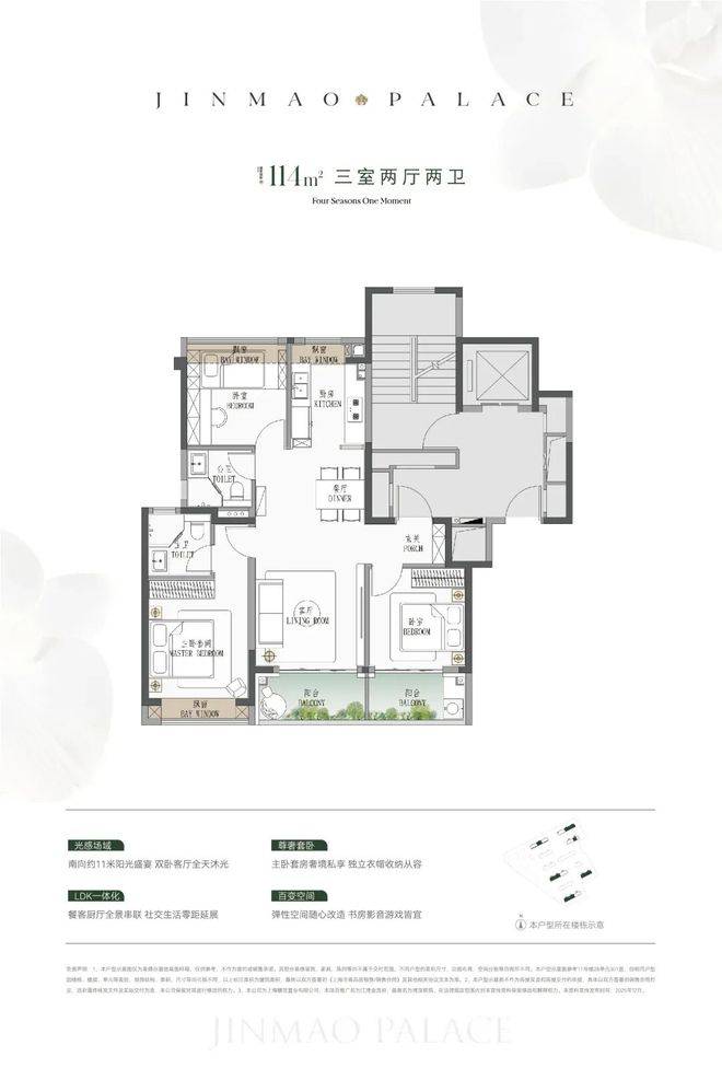 类一梯一户设计,电梯厅私密入户;四个房间,从小太阳到二胎家庭/三代同堂都能轻松托举全屋七飘窗,厨房、卫生间、卧室都有,总面积超过9.9㎡,实用性拉满!
