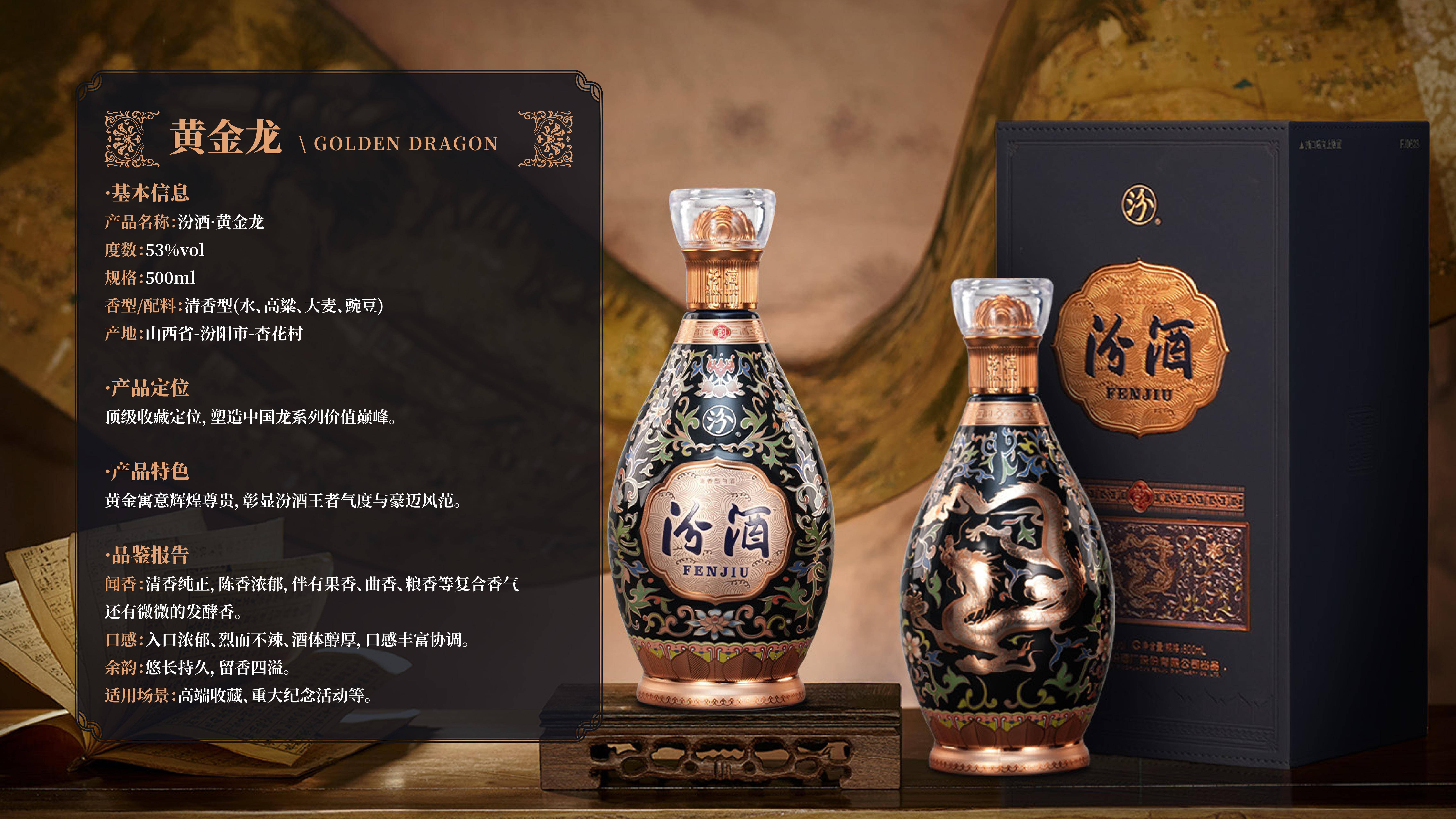 作为汾酒高端化战略的核心载体,中国龙系列的每一处细节都彰显着千年匠心与文化底蕴。该系列取故宫珍藏元代蓝釉白龙纹盘之龙韵,凝元明清三代匠魂,将三爪古龙神韵与帝王五爪威仪相融,龙鳞化酒纹、釉色融瓶身,实现了传世孤品东方龙魄与清香美酒的完美结合。瓶身设计更是匠心独运,水晶龙瓶盖源自西汉错金铜博山炉,将仙山意境凝于方寸;精湛浮雕工艺让祥云灵龙栩栩如生,珍稀琉璃瓶身澄澈通透、孔雀蓝釉色尽显绮丽;瓶底莲座承祥,承载着圣洁吉祥的美好寓意,未饮其酒,先赏其韵。