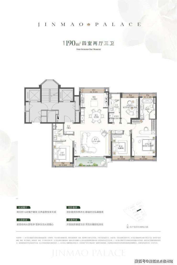 ●建面约190㎡4房:楼王位置的顶奢大平层,同价位段在杨浦只能买到约120㎡3房!