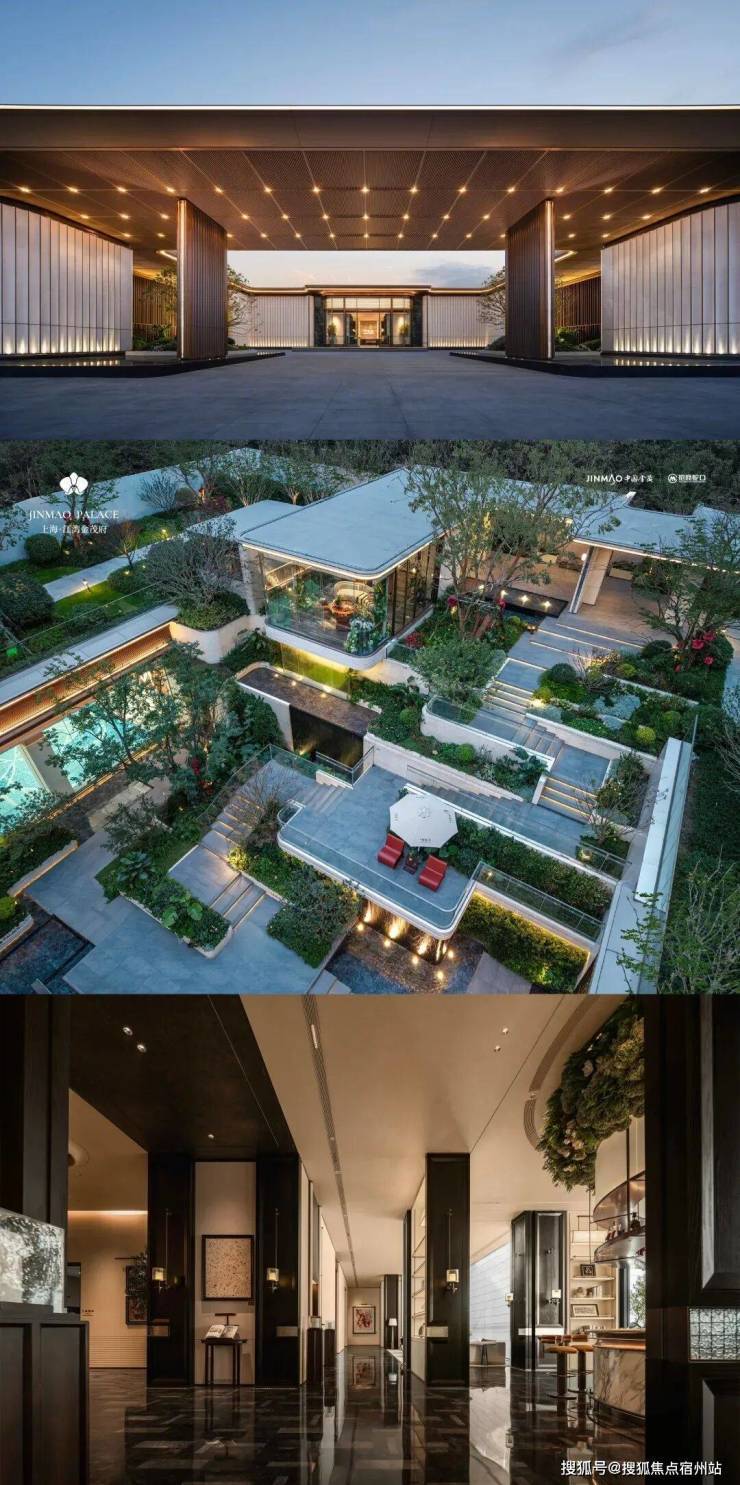 ④封面门庭,昭示身份的尺度担当约70米超阔府门尺度,融合奢石、铝板、水景与弧线设计,塑造出可与市中心20万+豪宅比肩的入口气场。超1000㎡五星级酒店式前场与落客空间,不仅在功能上实现从容出入,更在感官上树立了北上海大宅的门面典范。江湾金茂府,不以效果图许诺未来,而以实景收藏当下。每一处细节的提前兑现,都是对“产品主义”最诚恳的践行。